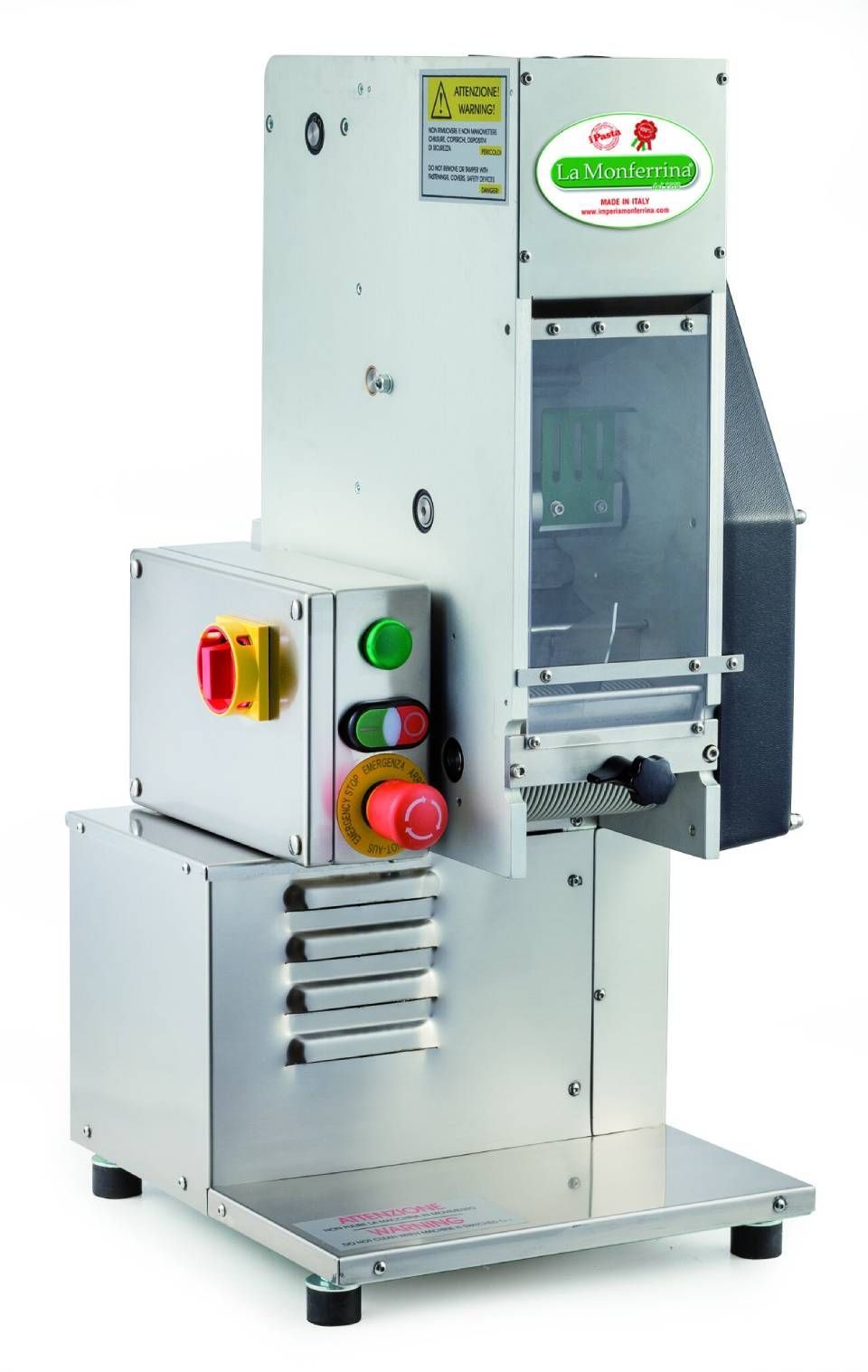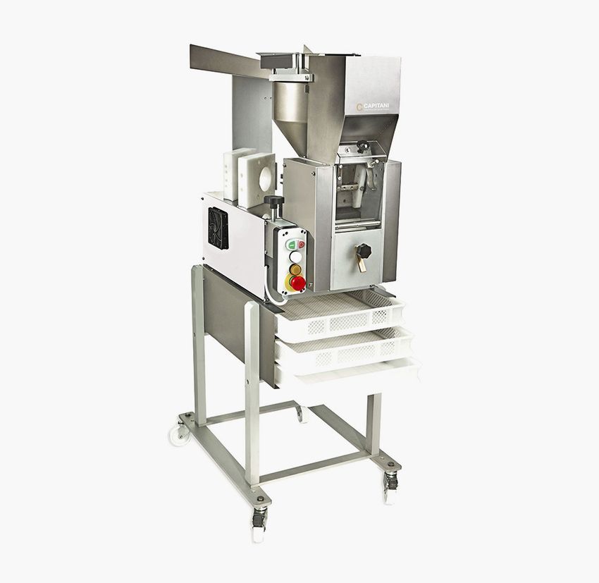 Die Maschine ist vollständig aus Edelstahl gefertigt und mit einem automatischen Rückführungssystem für Mehlausgestattet.